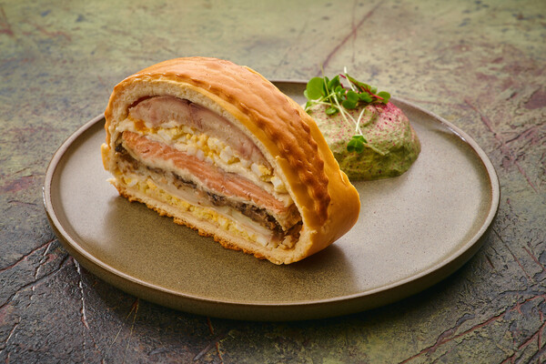 Для ее приготовления потребуются: кислое сдобное тесто, сливочное масло, яйца, филе разных рыб (например, стерляди, лосося и судака), грибная икра, соус бешамель, вареное пшено, льезон (взбитые яйца с молоком), соль, свежемолотый черный перец.