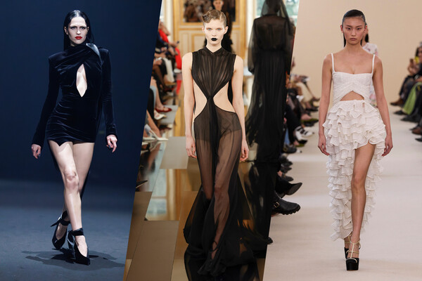 Осенне-зимний сезон этого года будет временем одежды с дозированным количеством обнаженного тела. Этой цели служат топы и платья, часто вечерние и коктейльные, с вырезами на груди или боках, открывающими взору зрителей то полоску на животе или груди, то бочок или бедро — в общем, нечто манящее и недостижимое. Этой детали достаточно на черных платьях-футлярах Mugler и Miu Miu, летящих нарядах Valentino, Giambattista Valli, Nina Ricci и Loewe.