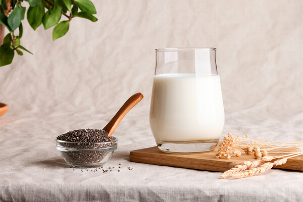 - Замочите две столовые ложки семян чиа в миндальном молоке на 5-10 минут.