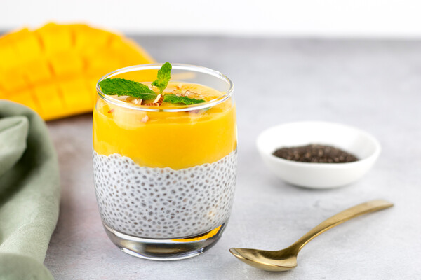 Пудинг из манго, миндального молока и семян чиа