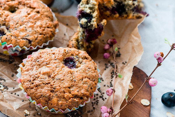 Овсяный кекс с семенами чиа и черникой