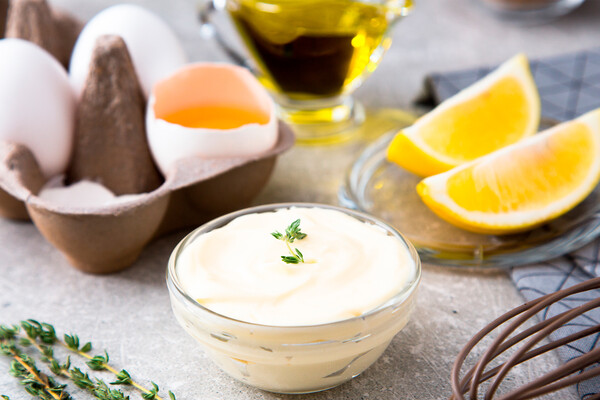 Яичные желтки содержат лецитин — природный эмульгатор, который помогает связать воду и масло. Благодаря этому получается создать гладкую текстуру майонеза. Желтки также придают ему насыщенный желтый цвет. Можно использовать не только куриные яйца, но и перепелиные.