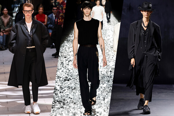 В женской моде каждый сезон претендует на то, чтобы изобрести «новый черный». В мужской дизайнеры не мудрят: на подиумах доминировал старый добрый черный. Образы в стиле total black показали большинство участников Недели: показ Louis Vuitton открылся чередой из 20 мужчин в черном, бренд Y3 показал, как использовать этот цвет в спортивных образах, а Yohji Yamamoto сумел даже в совершенно черных луках сохранить ощущение свежести и легкости. Sacai, Kiko Kostadinov, Namesake, Dries Van Noten, System — все показали образы в цветах угля. Вывод: будущей весной мужчины могут носить любую одежду, если она — черная.