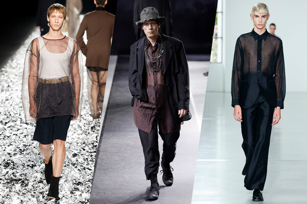 В этом сезоне дизайнеры пощадили простых незамысловатых мужчин, не готовых примерять мини-юбки и кроп-топы (пара длинных широких юбок не в счет, поскольку такие не стыдно будет надеть любому шотландцу). Однако кое-какие элементы женской моды все же на подиумы просочились. В частности — прозрачные ткани.
