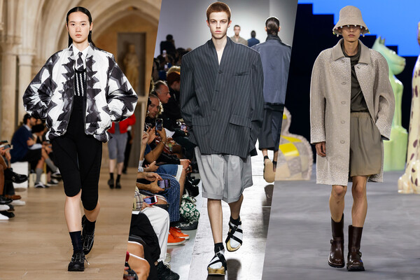 Отдельные бренды, впрочем, как южнокорейский Wooyoungmi, предложили шорты чуть более облегающие, чем все остальные. Но все равно — длинные.