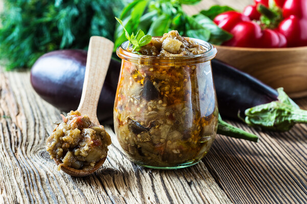 - Поставьте банки в кастрюлю с теплой водой, доведите до кипения и кипятите еще 20 минут при медленном бурлении. Закатайте банки, переверните и укутайте до полного остывания. Баклажанную икру можно использовать в качестве закуски, намазывать ее на хлеб или добавлять в различные блюда (в овощное рагу, супы или соусы).