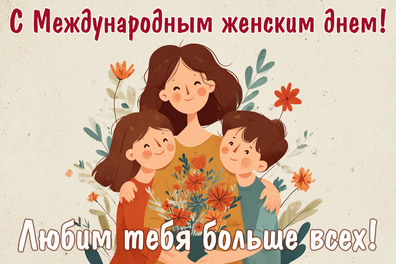 * С Международным женским днем, родная! Ты наполняешь наш дом радостью и светом. Пусть впереди тебя ждут только яркие победы и счастливые моменты!