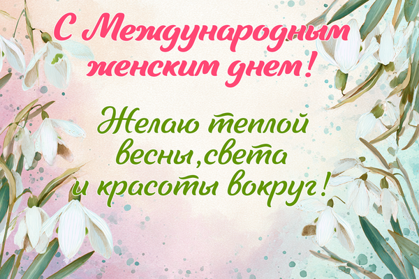 * С 8 Марта! Пусть работа открывает новые возможности, а в личной жизни царят любовь и радость!