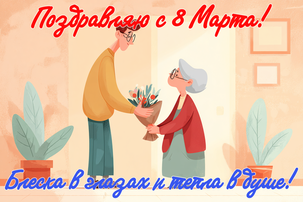 * С Международным женским днем, любимая бабушка! Спасибо тебе за тепло, ласку и вкусные пироги — я до сих пор вспоминаю их вкус и аромат! Желаю тебе крепкого здоровья и спокойных счастливых дней!