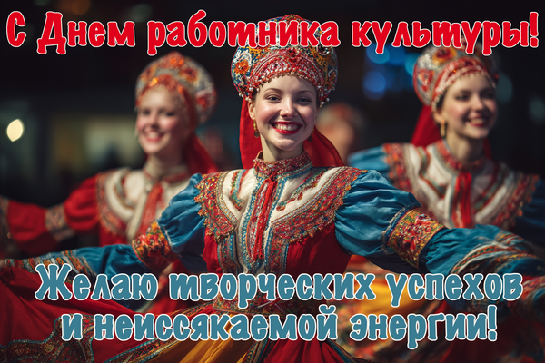 * С Днем работника культуры! Пусть твой талант покоряет все больше зрителей, а рядом будут люди, которые ценят и поддерживают!