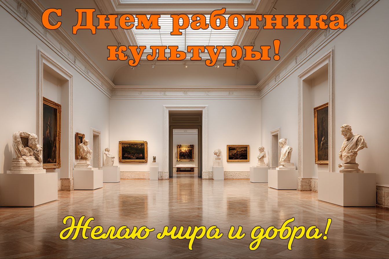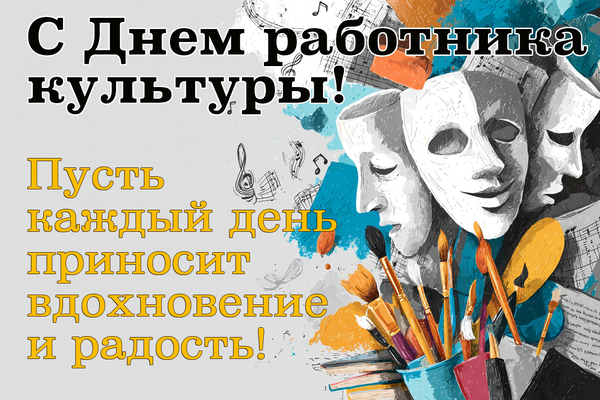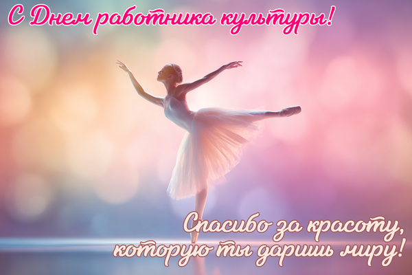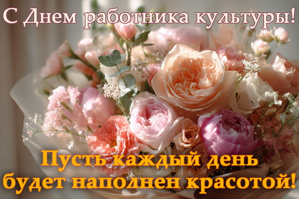 * С Днем работника культуры! Спасибо, что даришь людям красоту, вдохновение и положительные эмоции. Пусть твоя жизнь будет такой же яркой, как твоя работа!