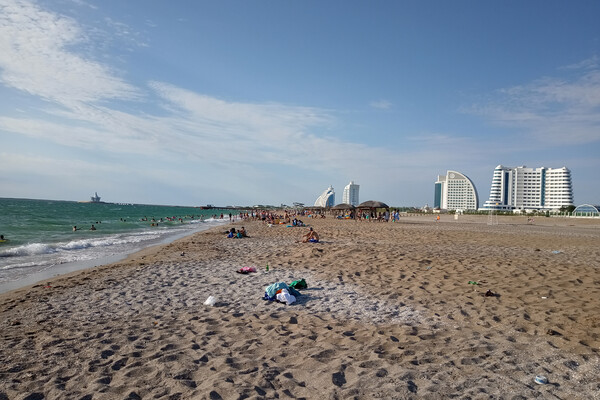 Курортная зона Аваза — почти город-сад на побережье. Фонтаны, небоскребы, пустыня и при этом море — чистое и почти безлюдное. Ощущение, будто отдыхаешь на другой планете, где все стерильно, странно и неожиданно приятно.