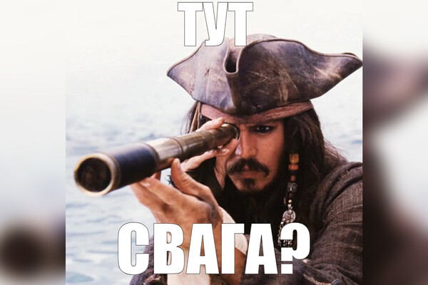 - Мемах-картинках. Например, где капитан Джек Воробей ищет свагу, глядя в подзорную трубу.
