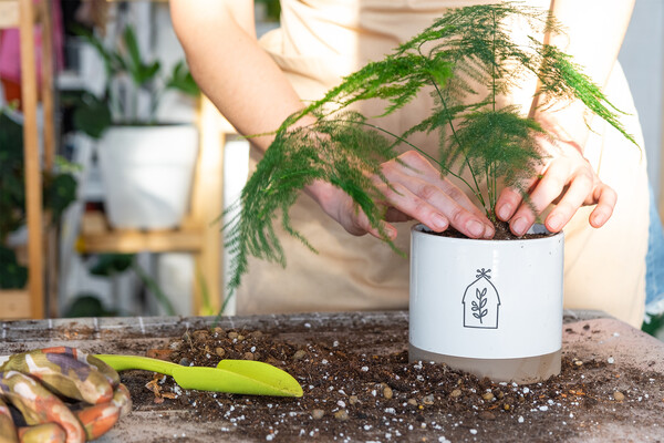 Пересаживают аспарагус методом перевалки: аккуратно выньте растение из старого горшка, стараясь не повредить мясистые корешки. Корневой ком можно немного растрясти и убрать с него верхний слой старой земли. Если заметно много сухих или подгнивших корней, их стоит обрезать. Затем растение помещают в новый горшок чуть большего диаметра, свежий грунт засыпают по бокам.
