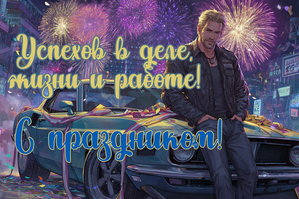 - С праздником! Желаю, чтобы все начинания завершались громким успехом, а уважение и признание окружающих росли с каждым днем!