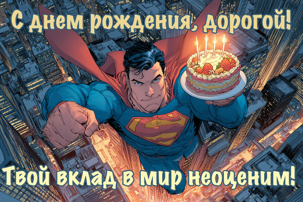 - С днем рождения! Оставайся таким же сильным, мудрым и надежным. Мир нуждается в таких мужчинах, как ты!