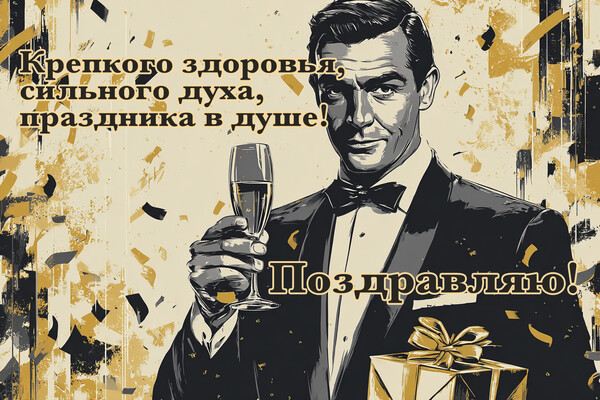 - С днем рождения, настоящий мужчина! Ты уже доказал всем, что на тебя можно положиться в любой ситуации. Ты — та скала, о которую разбиваются все неурядицы жизни. Желаю тебе оставаться надежной опорой для своих близких, сильным и мужественным, добрым и справедливым!
