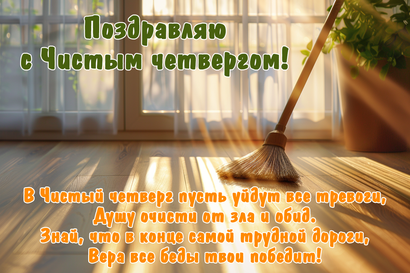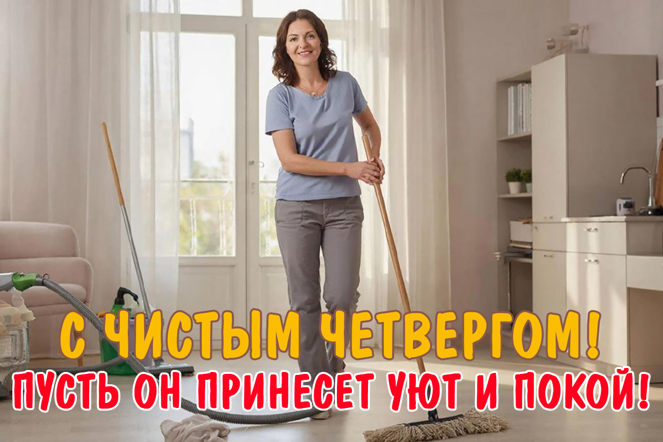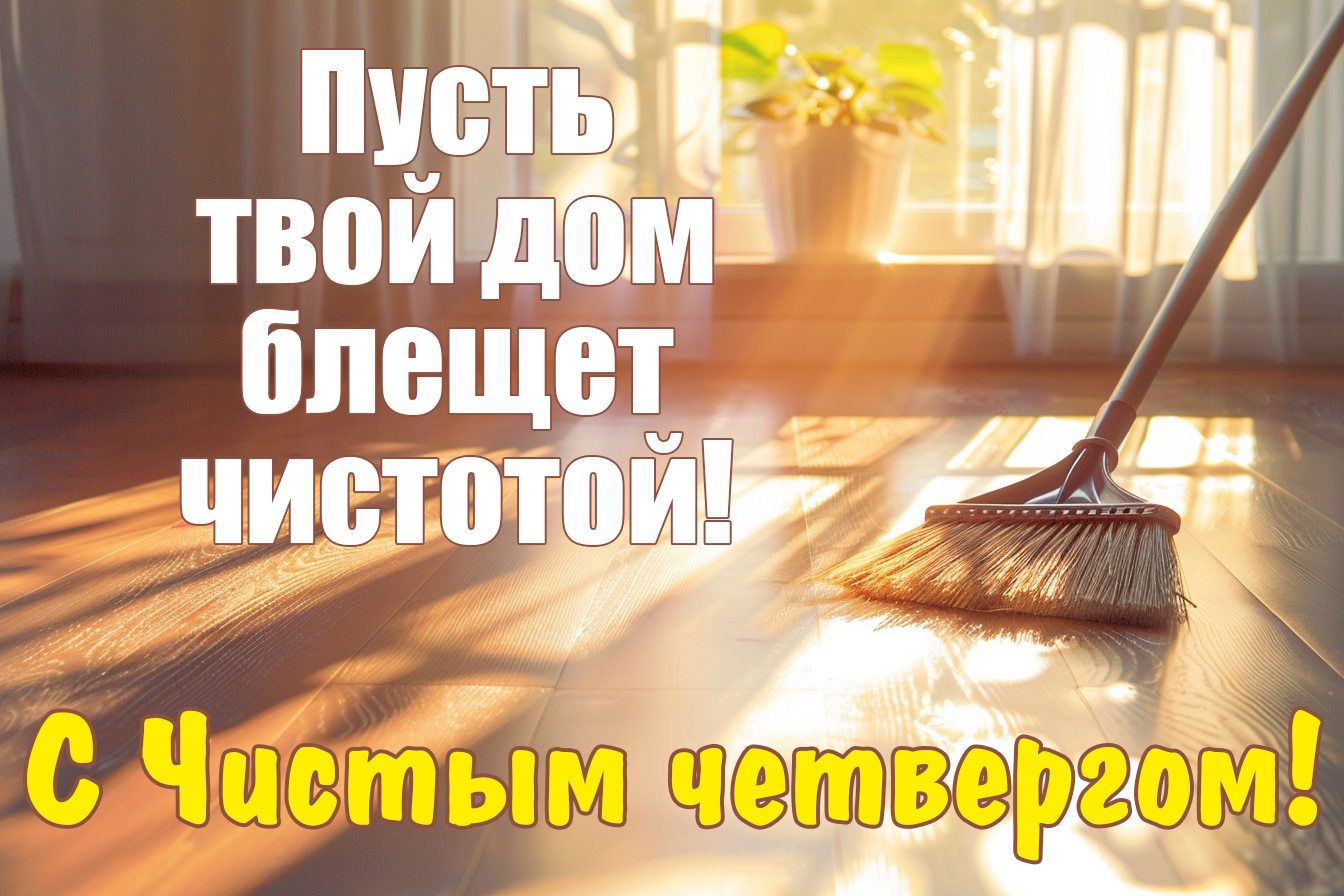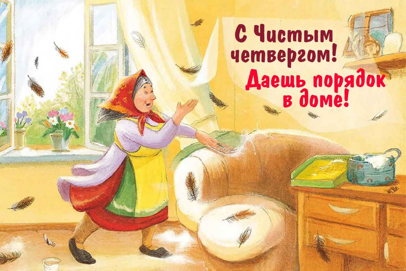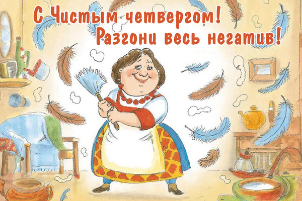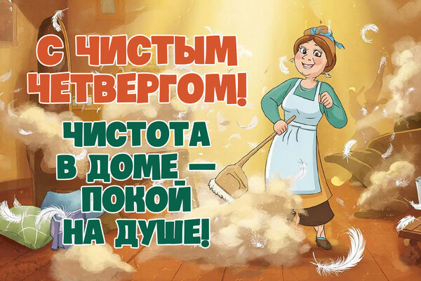 Чистый четверг — лишний повод напомнить о том, как важен порядок и уют в доме. Отправьте другу или близкому человеку нестандартную открытку с приятным пожеланием, чтобы мотивировать его на домашние дела.
