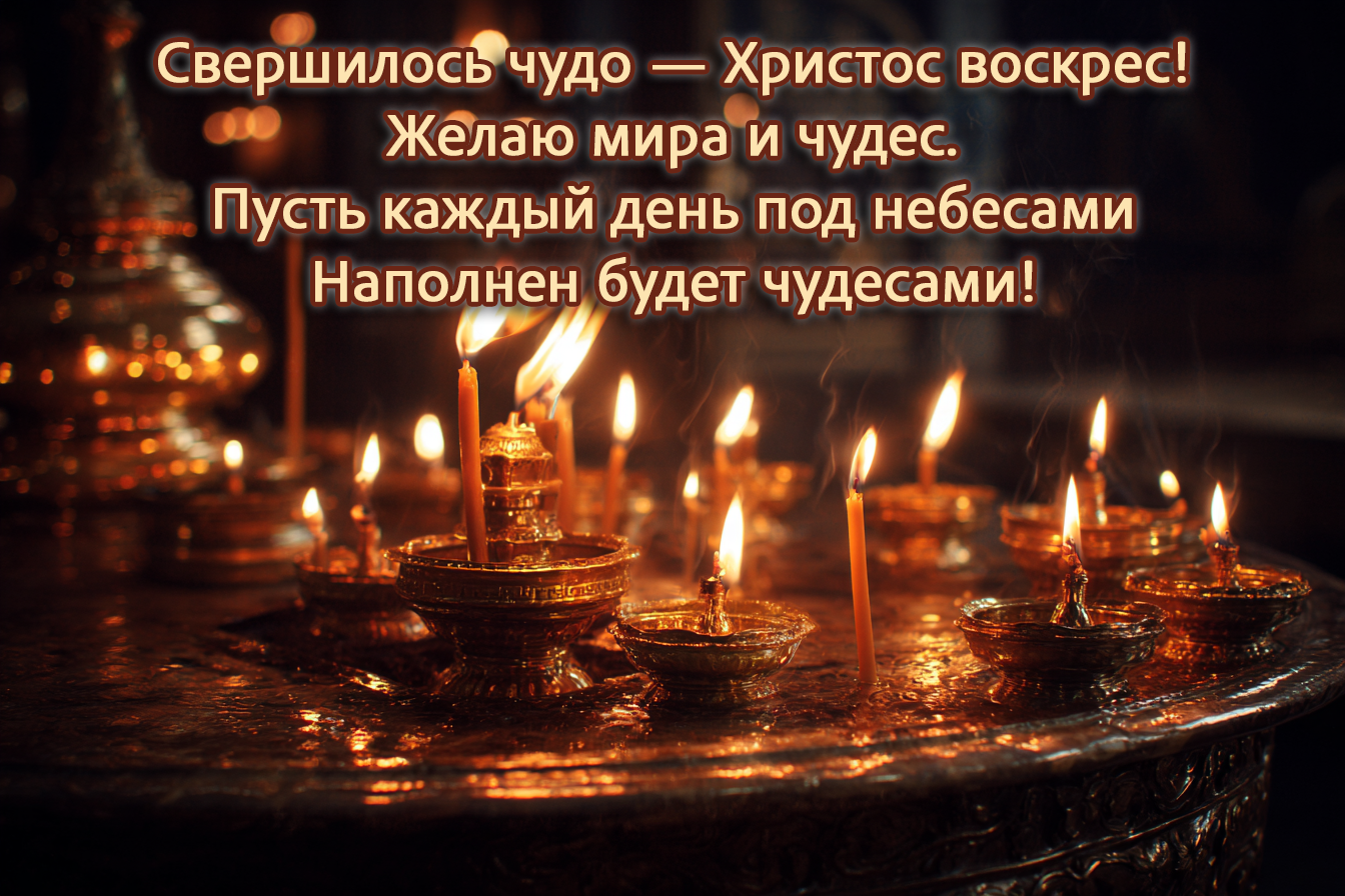 * Христос воскресе! Желаю, чтобы свет этого праздника разогнал все тревоги и наполнил жизнь смыслом и покоем!