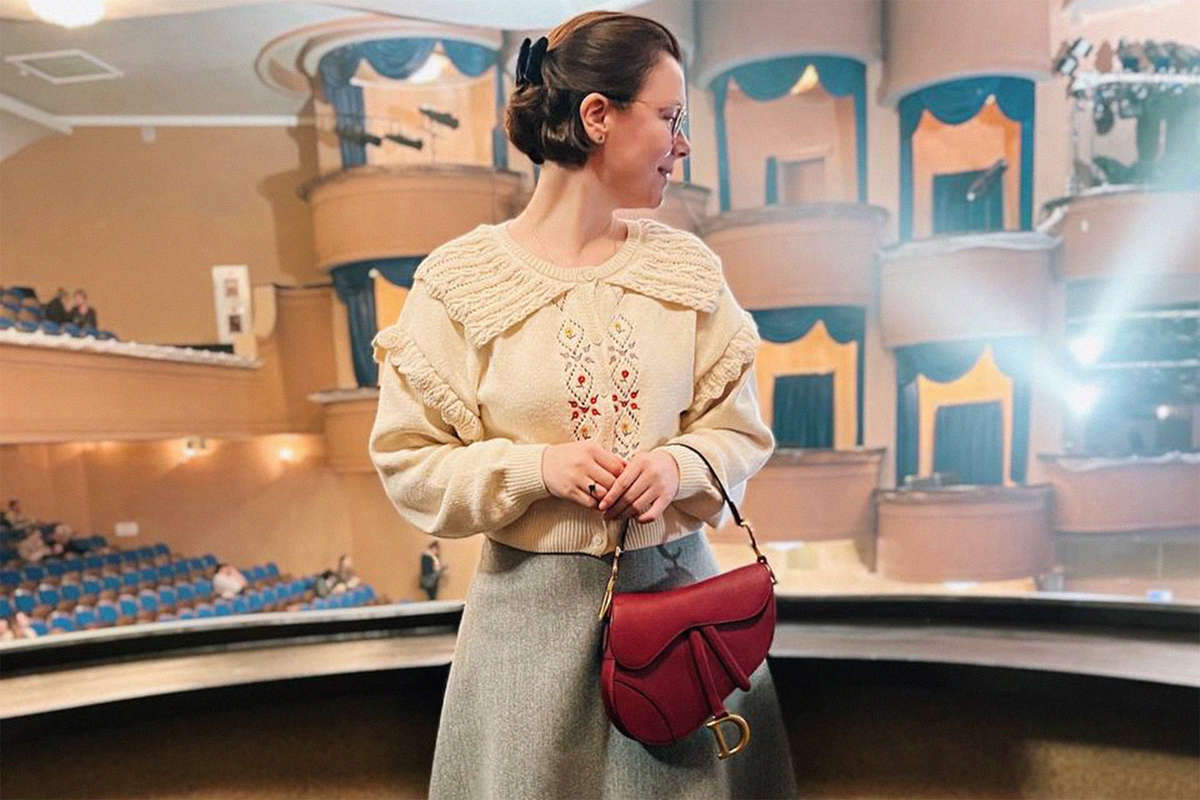 Фотографии были сделаны в Губернском театре в Москве. На снимке Татьяна Брухунова позирует с сумкой бренда Dior — стоимость подобной модели на официальном сайте бренда составляет 245 тысяч рублей. Легендарная модель Saddle вошла в моду еще несколько лет назад.
