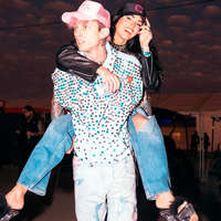 Меган Фокс опубликовала в личном блоге фотографию с Machine Gun Kelly. На снимке актриса запечатлена сидящей на спине у своего жениха-рэпера. Она одета в бейсболку, кожаную куртку, рваные джинсы, босоножки на платформе и высоком каблуке. На нем были кепка, расшитая кристаллами футболка и джинсы.
