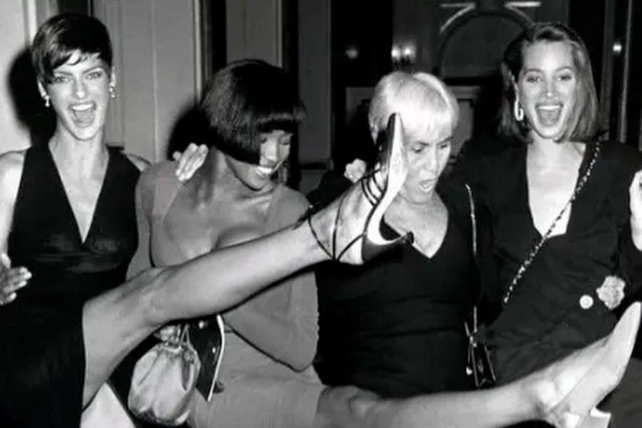 На одном из архивных снимков запечатлены Наоми Кэмпбелл, Линда Евангелиста и Кристи Тарлингтон — в 90-е подруг-супермоделей прозвали «святой троицей».