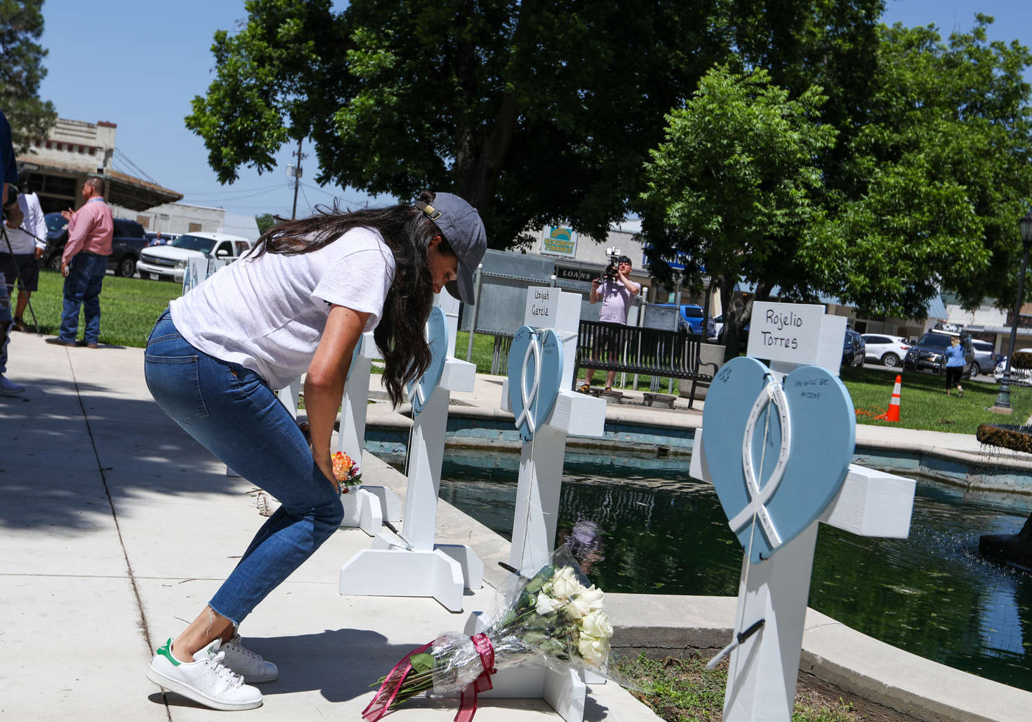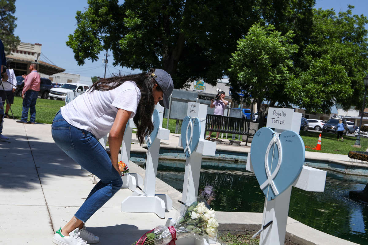 В минувший четверг, 26 мая, Меган Маркл посетила город Ювальд (штат Техас, США), чтобы возложить цветы к мемориалу жертвам стрельбы в местной начальной школе, произошедшей днем раньше. Герцогиня Сассекская была одета просто: в бейсболку, белую футболку, джинсы и кроссовки.