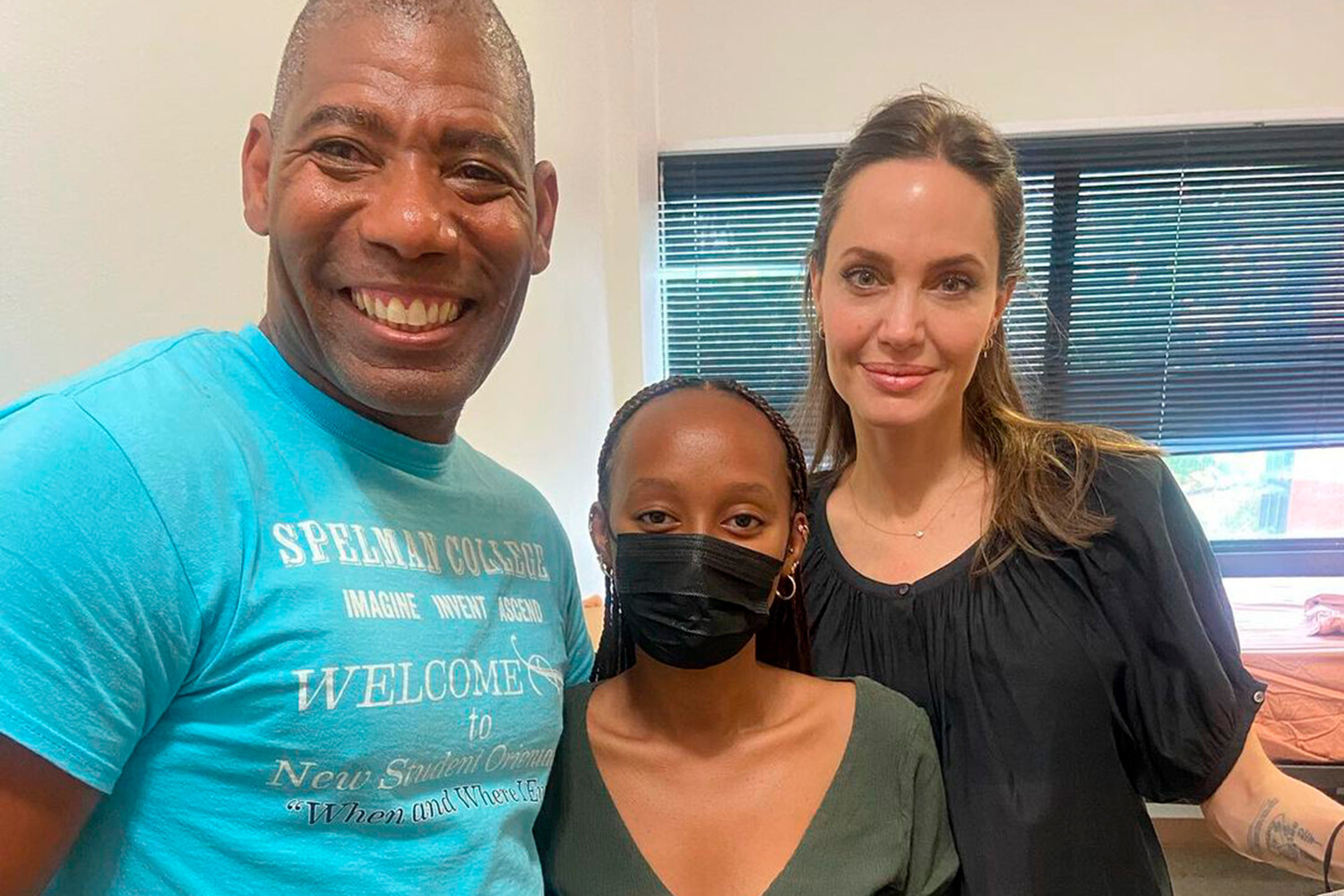 Холлман спросил у Джоли: «Каково это — быть мамой ученицы Spelman?» На это Джоли ответила: «Я так взволнована, я так взволнована».