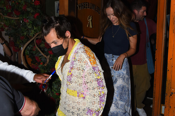 Папарацци сфотографировали пару, когда они выходили из итальянского ресторана RubiRosa. Оливия была одета в темно-синюю футболку и длинную юбку с цветочным принтом, а Гарри в коричневые брюки в тонкую полоску и светлую кружевную рубашку.