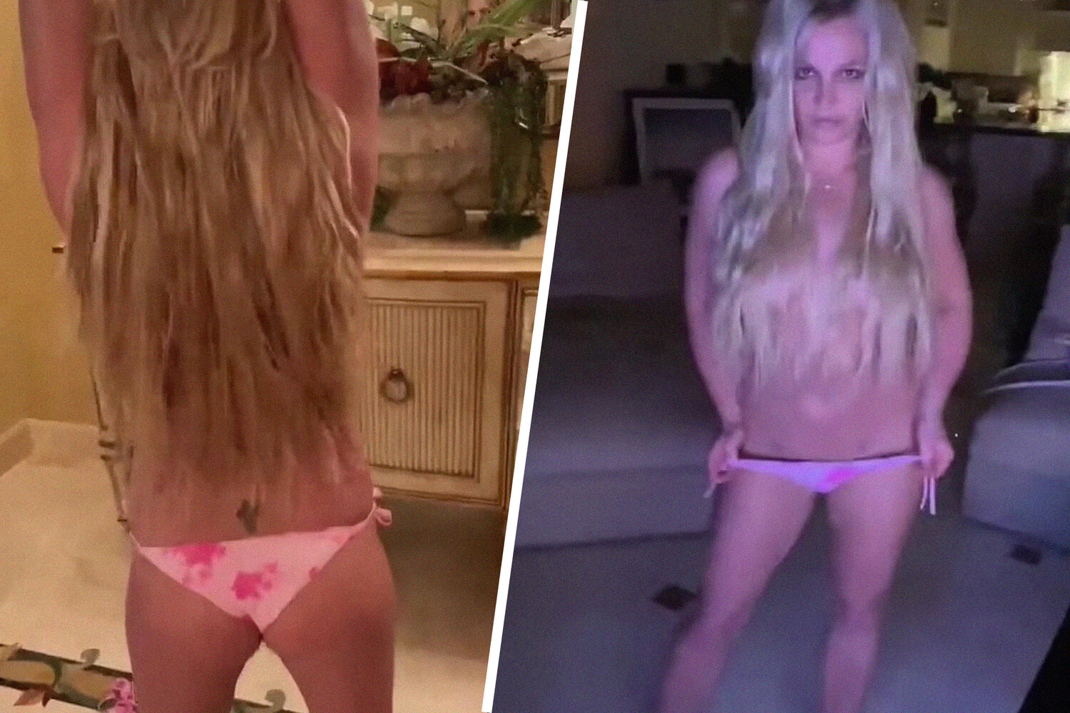 40-летняя Бритни Спирс выложила в социальных сетях видеоролик, в котором предстала топлес. Одетая в одни плавки от купальника и туфли на каблуке, она станцевала сначала в гостиной, после чего переместилась в ванную комнату. Обнаженную грудь певица скрыла за волосами.