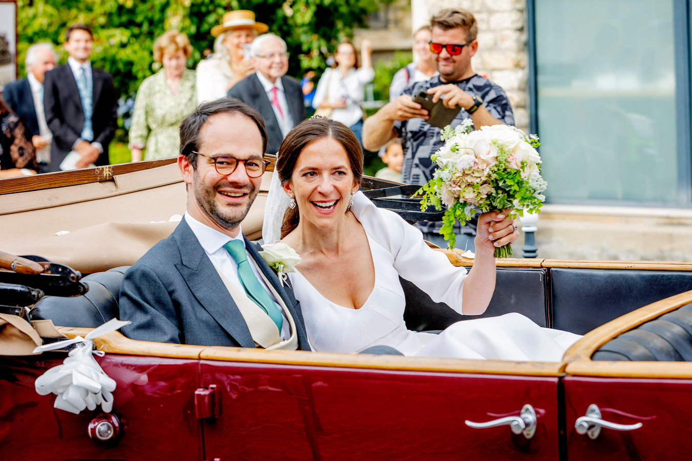 Среди гостей пары были королева Бельгии Матильда, ее супруг, король Филипп, и их трое детей — принцесса Елизавета, принцесса Элеонора и принц Эммануэль, — а также мать жениха и бельгийской королевы графиня Анна-Мари д'Юдекем д'Акос.
