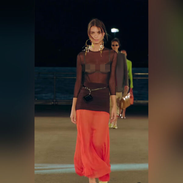 В рамках Недели моды в Нью-Йорке прошел показ американского бренда Tory Burch. Эмили Ратаковски вышла на подиум и продемонстрировала образ с прозрачным топом, оранжевой юбкой-макси и желтыми туфлями. Из аксессуаров дизайнеры добавили массивные серьги, кольца и пояс с сумкой.