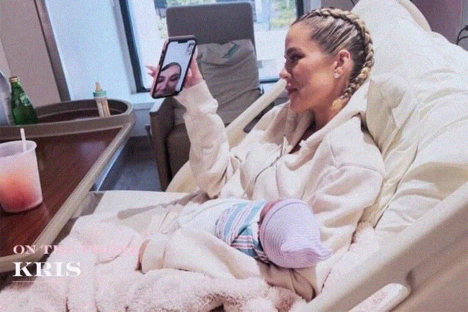 Во время съемки Хлои Кардашьян звонила близким по FaceTime, чтобы познакомить их с новым членом семьи. На руках она держит новорожденного сына. На тот момент мать с ребенком находились в палате после родов.