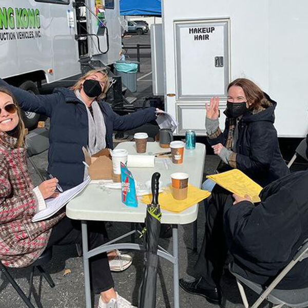 На снимке актрисы Оливия Уайльд и Флоренс Пью сидят на съемочной площадке, беседуют и улыбаются на камеру. Флоренс Пью, в свою очередь, выложила в личном блоге серию закадровых снимков и скриншотов совместной сцены с коллегой.