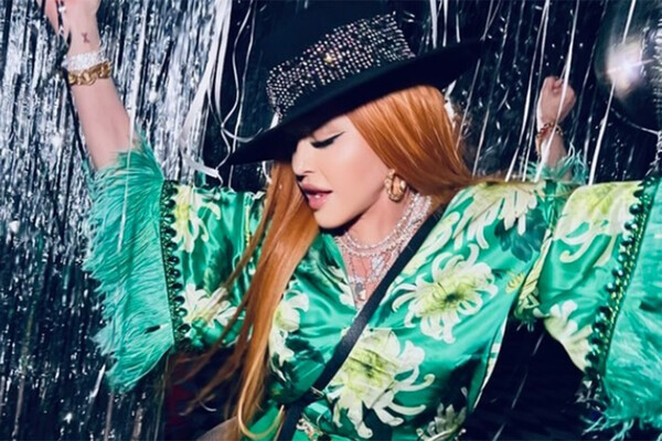 64-летняя артистка устроила вечеринку в честь 17-летия сына. Для торжества она выбрала дерзкий образ: шорты-мини, колготки в сетку, шелковую блузу и ковбойскую шляпу. Образ дополнили многочисленные подвески, браслеты и серьги. Именинник выбрал наряд в той же цветовой гамме: жакет и брюки в зеленых стразах и черную шелковую рубашку. На дне рождения также присутствовали сестры Дэвида Банды: близнецы Стелла и Эстер.