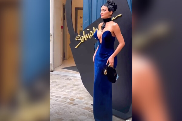 Несмотря на то, что показ Schiaparelli проходил в онлайн-формате – бренд представил новую коллекцию в видеоролике – на мероприятии собралось немало знаменитостей. Внимание фотографов было приковано к Кайли Дженнер, которая пришла на показ в синем обтягивающем бархатном платье в пол с глубоким декольте. 25-летняя модель дополнила образ широким колье-чокером с большим кулоном в форме сердца и классическими черными туфлями-лодочками. Младшая сестра Ким Кардашьян собрала волосы в высокий пучок, уложив передние пряди волнами в стиле старого Голливуда, и сделала яркий макияж со стрелками и красной помадой.