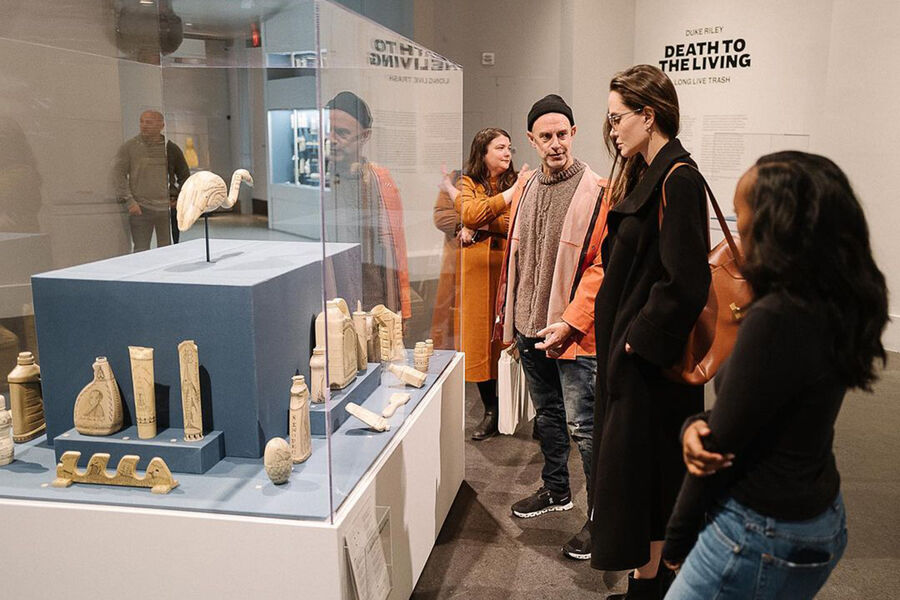 Снимки были сделаны во время похода Анджелины Джоли и Захары в Бруклинский музей в Нью-Йорке. Актриса была одета в черное пальто, которое дополнила полусапожками Valentino на устойчивом каблуке и вместительной сумкой, а на ее дочери были черная водолазка, джинсы и кроссовки.