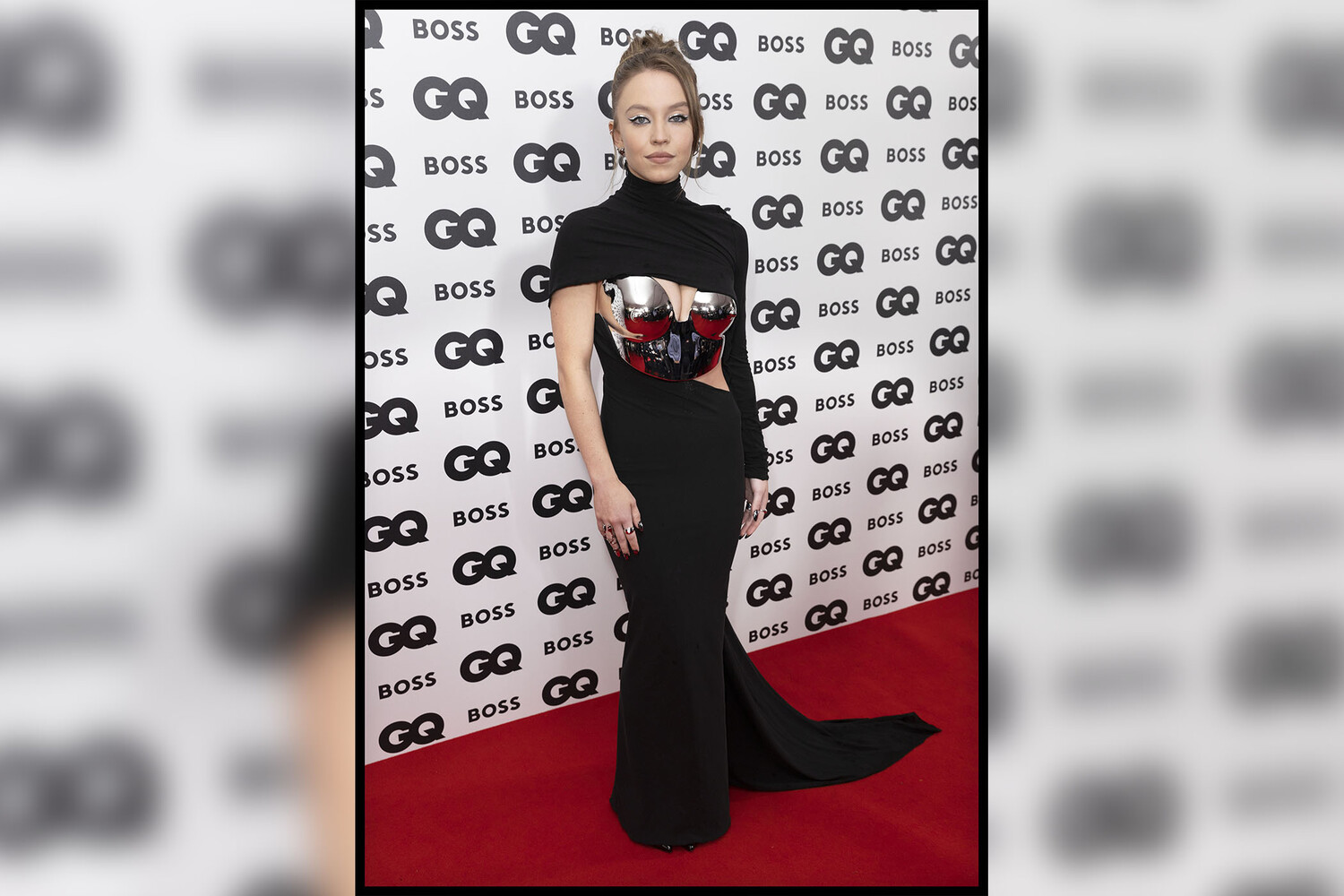 В среду вечером, 16 ноября, в Лондоне состоялась ежегодная церемония вручения премии GQ Men of the Year Awards в отеле Mandarin Oriental Hyde Park. 25-летняя актриса Сидни Суини стала звездой красной ковровой дорожки. Перед камерами она позировала в металлическом корсете, который подчеркнул ее фигуру, черном платье с вырезом на груди. Образ дополнили крупные черные серьги и сет из серебряных колец. Актрисе сделали акцентный макияж с блестками-тенями и угольно-черными стрелками.
