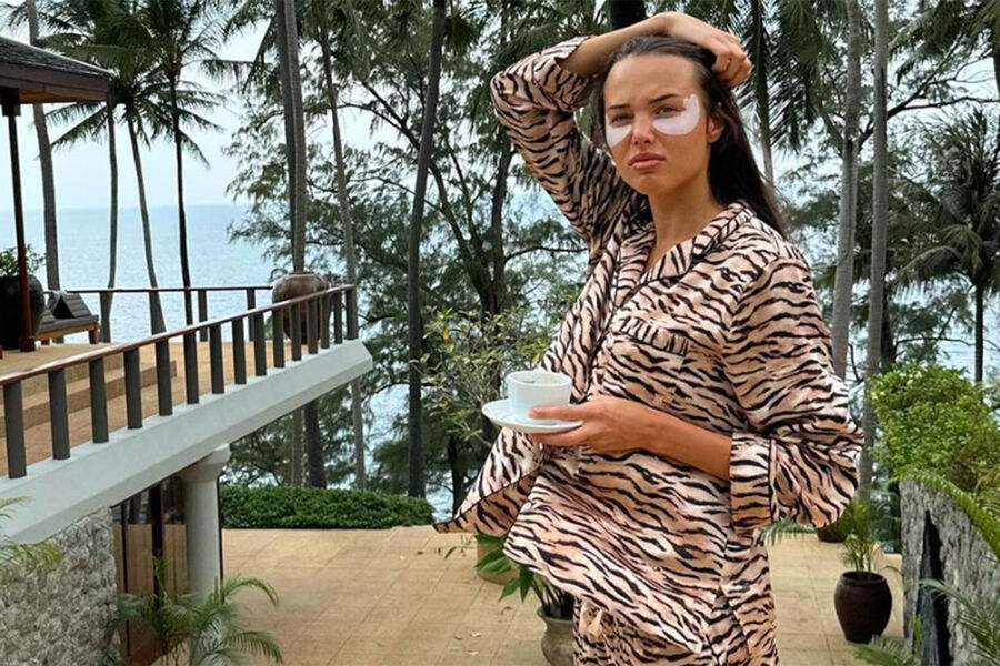26-летняя Анастасия Решетова выложила в социальных сетях серию снимков с отдыха. На опубликованных кадрах она позировала с распущенными волосами, без макияжа, с патчами под глазами и в пижаме с тигровым принтом.