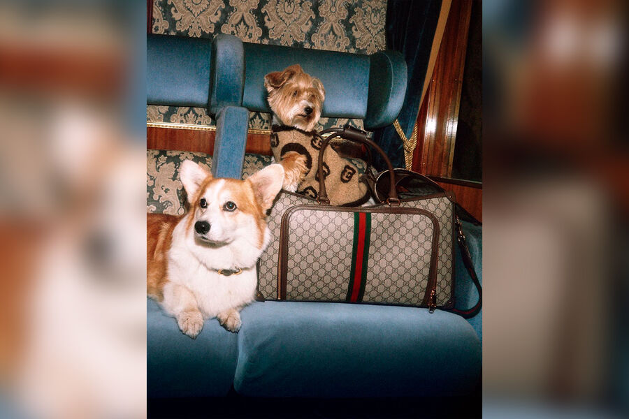 Корги в нарядах Gucci путешествуют на поезде в новой рождественской кампании бренда