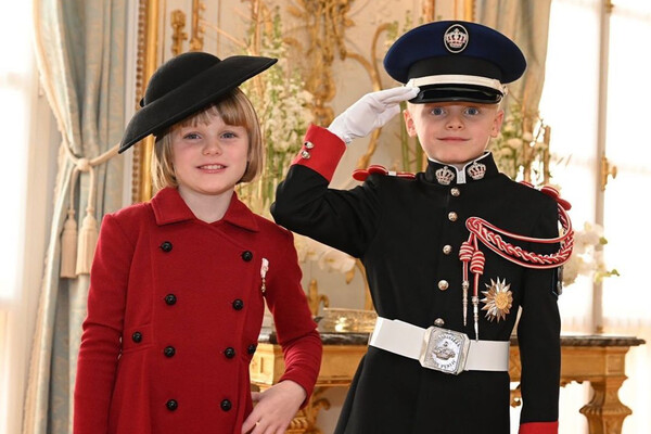 Монакская княгиня Шарлен выложила в личном блоге новый снимок с подросшими детьми. 7-летний принц Жак позировал в парадном мундире и брюках с лампасами, а его сестра-близнец, принцесса Габриэлла, — в черной шляпке и двубортном пальто красного цвета. «С Национальным днем Монако», — говорится в подписи к публикации.