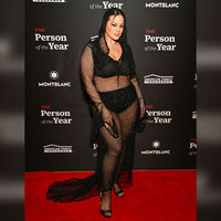 Для выхода в свет Эшли Грэм выбрала расшитое стразами платье-сетку с капюшоном, сквозь которое виднелось ее нижнее белье. Компанию модели plus-size составил ее супруг, видеооператор Джастин Эрвин.