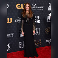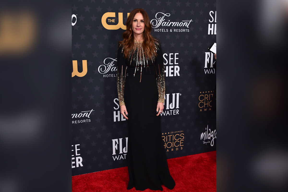 Актриса Джулия Робертс вышла на 28-й церемонии вручения премии Critics Choice Awards в черном платье Schiaparelli с узором из пайеток в виде лучей. Об этом пишет People.
