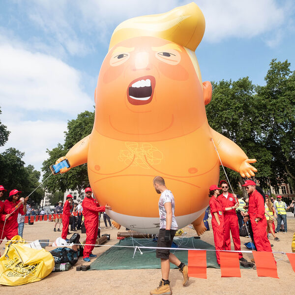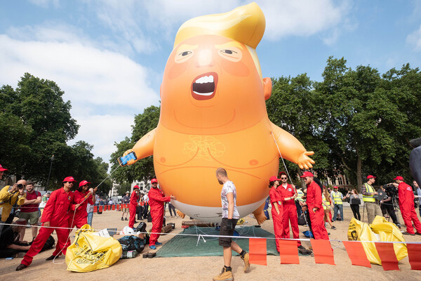 Впервые шар был выпущен во время рабочего визита Трампа в качестве президента США в Лондон в 2018 году. Тогда около 75 тыс. человек вышли на улицы Великобритании в знак протеста против него, а некоторые люди призывали объявить ему импичмент. Трамп встретился с королевой Елизаветой II и тогдашним премьер-министром Терезой Мэй. Когда он вернулся с государственным визитом в следующем году, шар с его изображением появился вновь.