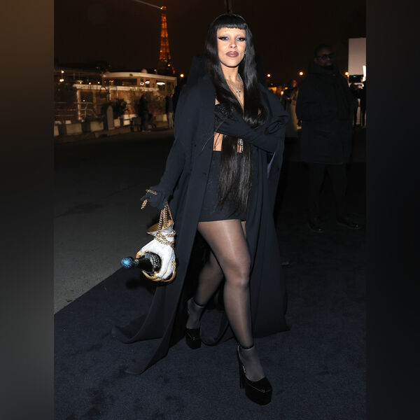 Doja Cat посетила показ Valentino Haute Couture. Для выхода она выбрала длинный черный тренч, такого же цвета мини-юбку, бюстгальтер и капроновые колготки Calzedonia. Уникальным элементом образа стала сумочка в форме руки в перчатке с похожими на когти ногтями. В этой руке была зажата бутылка текилы Patrón El Alto.