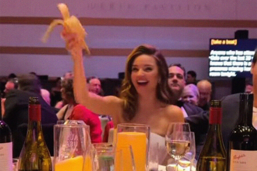 39-летняя модель появилась на вечере в обтягивающем белом платье без бретелек и босоножках на высоком каблуке. Сев за стол, Миранда Керр достала из сумочки свой ланч-бокс, и пока гости мероприятия наслаждались изысканными винами и ужином их трех блюд, перекусила бананом и кокосовой водой.