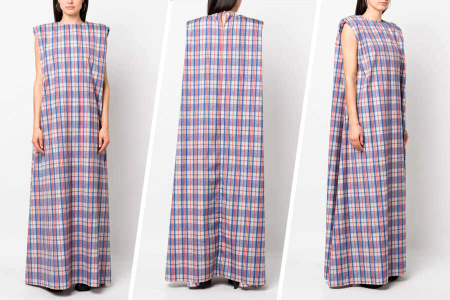 В новой коллекции бренда Vetements представлены платья с клетчатым принтом, объемными рукавами и вырезом на спине. Однако пользователи социальных сетей не оценили ткань, которую использовали для изготовления наряда. По их словам, она напоминает рыночную сумку из 90-х годов. Стоимость одного изделия на сайте составляет $1,4 тысячи (около 113 тысяч рублей).
