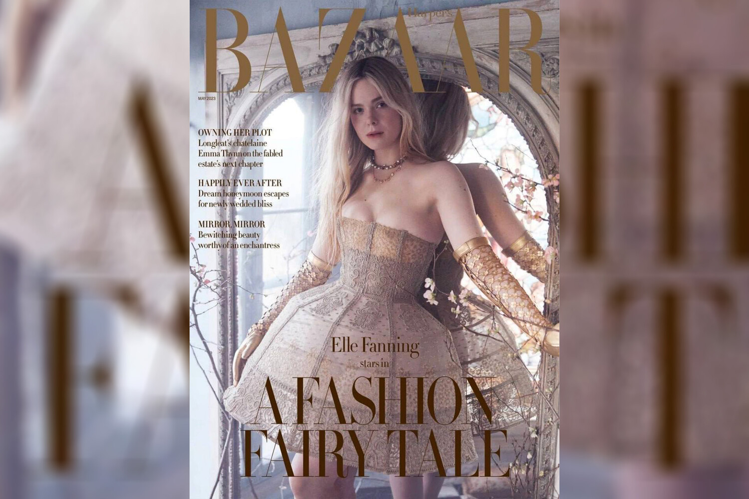 24-летняя звезда сериала «Великая», снятого о российской императрице Екатерине II, позировала в пышных платьях мировых домов моды, например, Dior и Valentino. За стилизацию образов отвечала Кэти Кастерин. Фотографировал Фаннинг Алекси Любомирски — британский фотограф, который делал официальные фотографии принца Гарри и Меган Маркл во время их помолвки и свадьбы.
