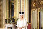 Его супруга королева Камилла позирует в коронационном платье, короне и мантии королевы Марии.