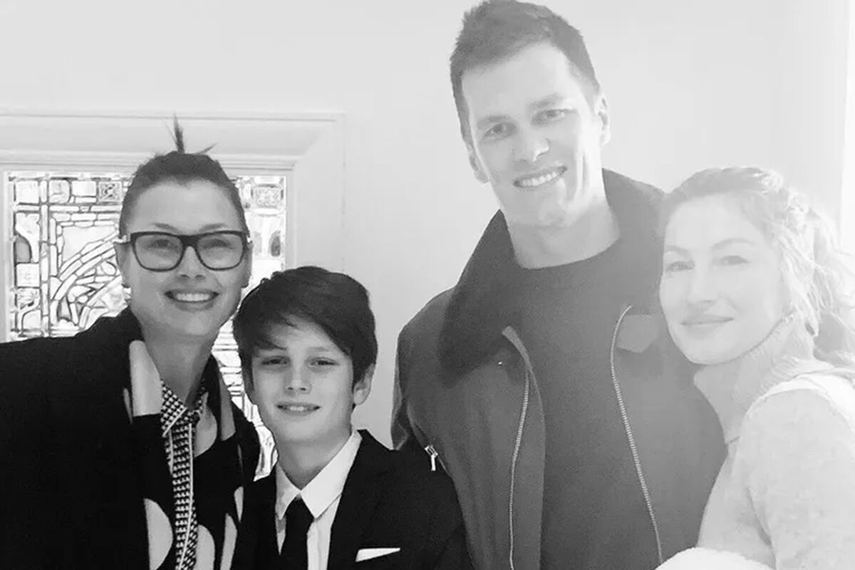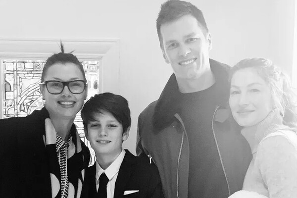 На снимке справа от Тома Брэди запечатлена 42-летняя Жизель Бюндхен, а слева — 52-летняя Бриджет Мойнахан с сыном Джеком, которому сейчас 15 лет. От бывшей жену у спортсмена двое детей — 10-летняя Вивьен и 13-летний Бенджамин Рейн.